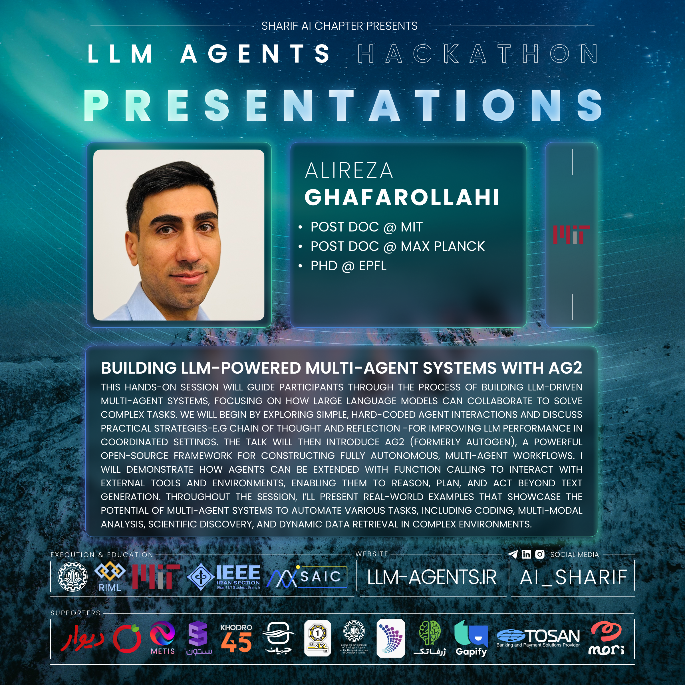 This hands-on session will guide participants through the process of building LLM-driven multi-agent systems, focusing on how large language models can collaborate to solve complex tasks. We will begin by exploring simple, hard-coded agent interactions and discuss practical strategies-e.g chain of thought and reflection -for improving LLM performance in coordinated settings. The talk will then introduce AG2 (formerly Autogen), a powerful open-source framework for constructing fully autonomous, multi-agent workflows. I will demonstrate how agents can be extended with function calling to interact with external tools and environments, enabling them to reason, plan, and act beyond text generation. Throughout the session, I’ll present real-world examples that showcase the potential of multi-agent systems to automate various tasks, including coding, multi-modal analysis, scientific discovery, and dynamic data retrieval in complex environments.