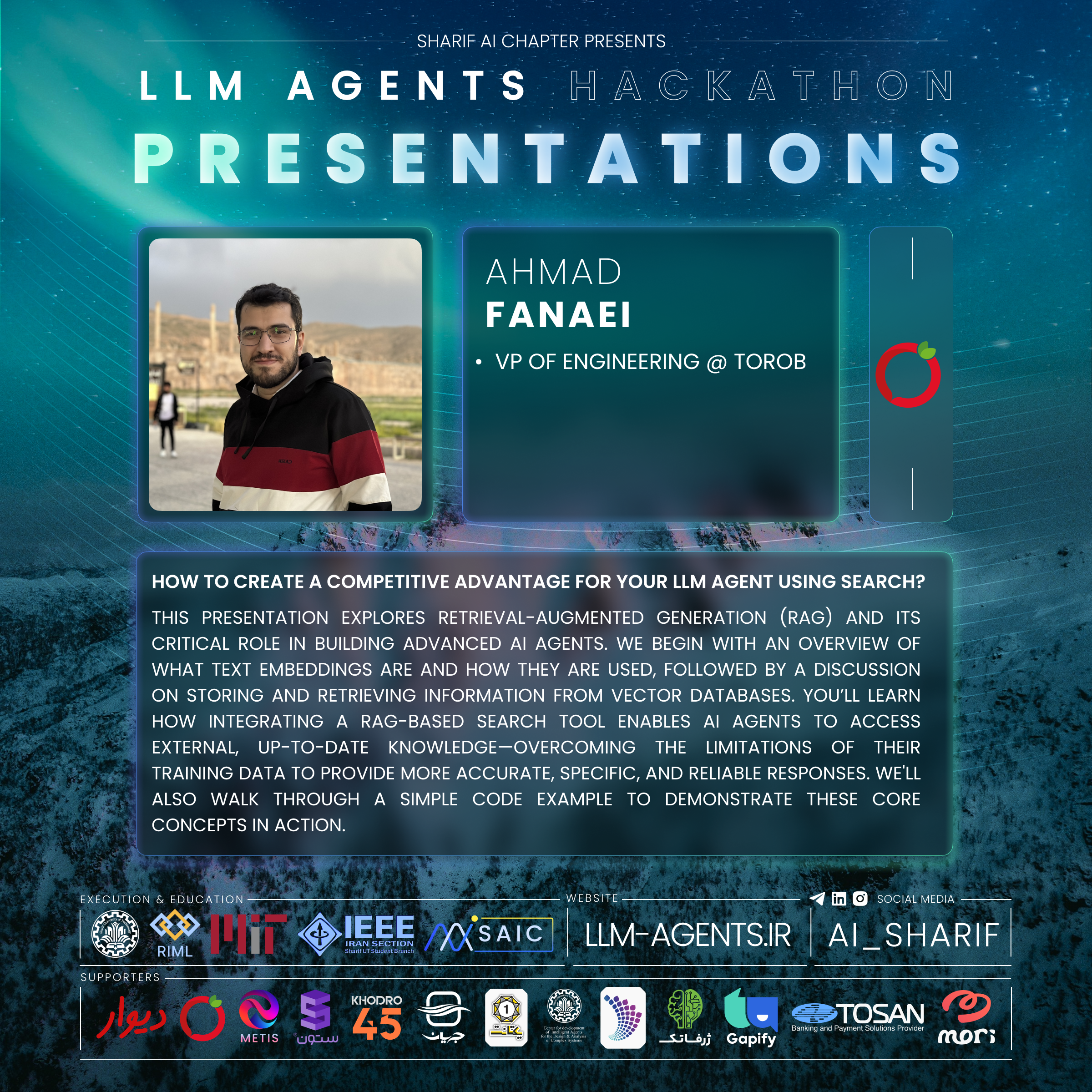 This presentation explores Retrieval-Augmented Generation (RAG) and its critical role in building advanced AI agents. We begin with an overview of what text embeddings are and how they are used, followed by a discussion on storing and retrieving information from vector databases. You’ll learn how integrating a RAG-based search tool enables AI agents to access external, up-to-date knowledge—overcoming the limitations of their training data to provide more accurate, specific, and reliable responses. We'll also walk through a simple code example to demonstrate these core concepts in action.